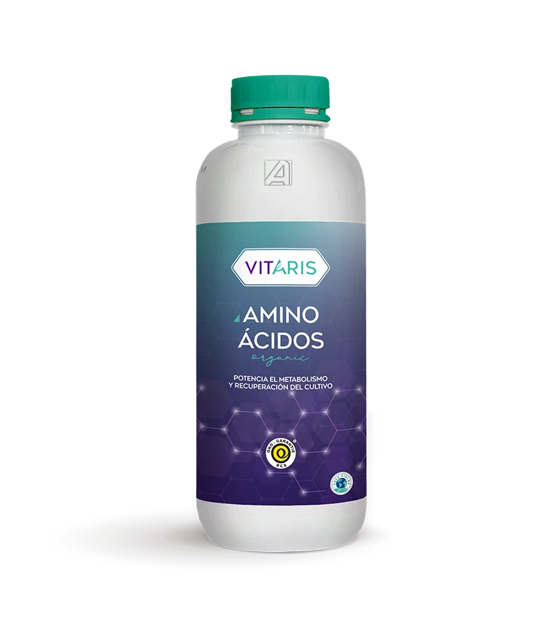 Vitaris Aminoácidos Organic es un bioestimulante de origen vegetal, que contiene gran cantidad de aminoácidos libres. Mejorando los procesos metabólicos en la planta, optimiza la penetración y transporte de los productos aplicados potenciando el crecimiento y vigor. Con certificación orgánica.